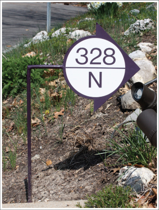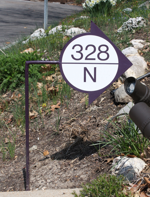 The buildings we create don’t stop and start at the front entry. Nornberg & Associates also takes care to make sure the creation fits with its surroundings as well. Every detail has to be right from the choice of landscaping to the address sign. When we did our own house, we decided to make the house number look like a building section symbol from one of our blueprints. In keeping with the modern style of the house, the sign was laser cut from aluminum plate, and painted to match the entry doors. White vinyl weatherproof numbers were then applied to pick up on the color of the modern white railing leading up the walkway. |